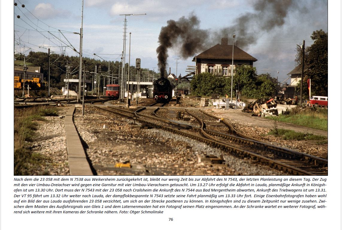 Am 27. September 1975 verabschiedete sich die Baureihe 23 bei der Deutschen Bundesbahn aus dem Planbetrieb. An diesem letzten Tag des Sommerfahrplan 1975 waren nochmals drei Neubau-Lokomotiven im Einsatz: Die 23 023 und die 23 058 auf der Tauberbahn zwischen Lauda und Crailsheim sowie die 23 042 auf der Murrbahn zwischen Backnang und Crailsheim. Dieser Bildband mit seinen 124 Seiten beschreibt den letzten Tag der Baureihe 23 im planmäßigen Dienst beim Bahnbetriebswerk Crailsheim und zeichnet mit mehr als 140 Bilddokumenten die Fahrten dieser drei Lokomotiven am 27. September 1975 nach. Diese drei Loks entgingen dem Scheinbrenner. Auch dies ist ein Thema.