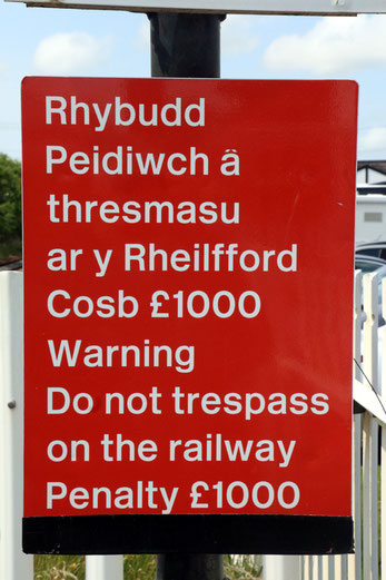 Was sich von der Fußgängerbrücke aus gut beobachten lässt, die ist in Richtung Britannia Bridge gelegene Bahnübergang, der von Hand bedient wird. Typisch für die Eisenbahnen in Großbritannien sind die Gatter.