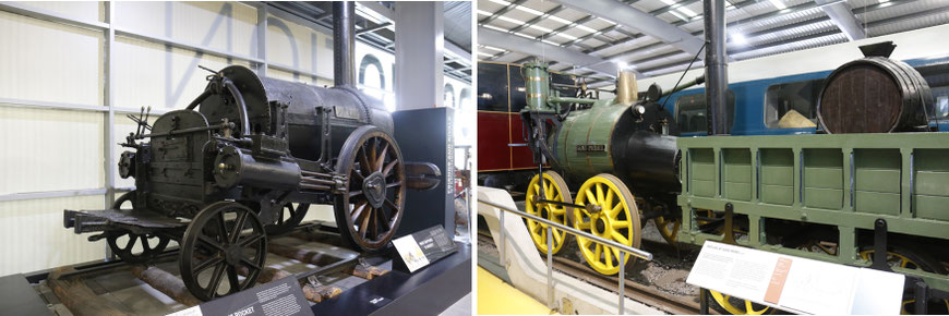 Die Zechenbahn Bowes Railwaysowie das Museum Locomotion (links die Orginal-Rocket, rechts der Sans Pareil-Nachbau von 1980) folgen.