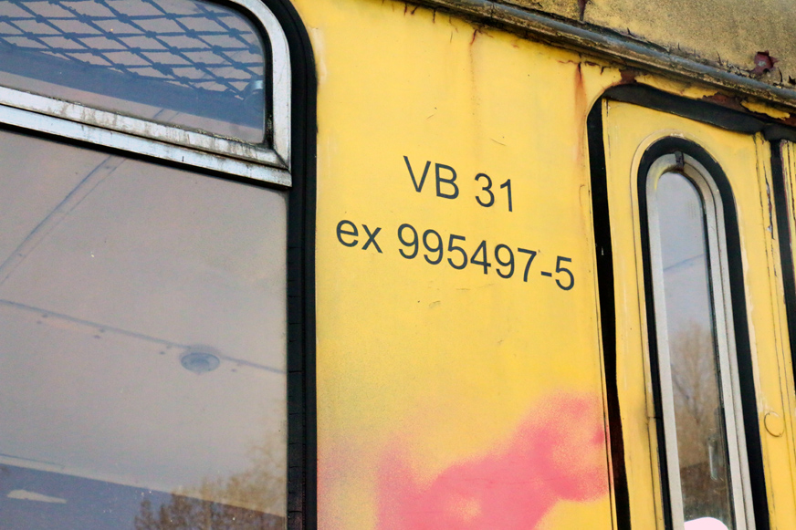 Nur noch ein Wrack ist der - beim dürftig ausgestatteten Spielplatz - aufgestellte Reisezugwagen 250586 Wt, der zuletzt beim MECL Losheim unterwegs war. Ein Teil des Wagens hatte in Losheim seine Abteile verloren und dafür eine Theke erhalten. Der so genannte polnische Hecht entsprach der Bauart C4ü-30PKP. Gebaut wurde der Personenwagen bei H. Cegielski in Posen im Jahr. 1936. Die Fallfenster mit ihren Messingrahmen haben ihre Liebhaber gefunden, wie auch viele andere Bauteile. Die Türen wurden an den Scharnierbändern mit schwerem Werkzeug durchtrennt. Der Grund ist unbekannt. Eine sinnlose Zerstörung eines bei der Aufstellung in sehr gutem Zustand befindlichen historisch wertvollen Wagens.